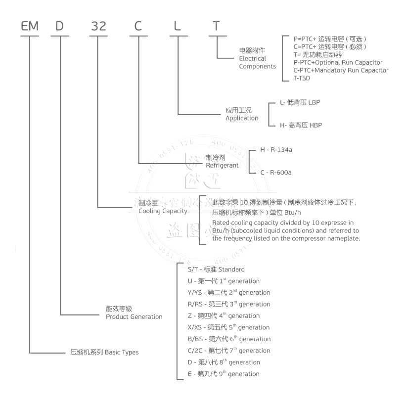 Embraco/恩布拉科活塞式壓縮EMU32CLC詳細參數:
