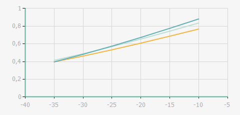 | 蒸發(fā)溫度 | 制冷量+/-5% | 能耗+/-5% | 現在能效+/-5% | 氣體流速+/-5% | 能效+/-7% | ||||