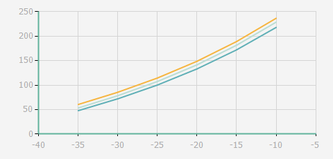 | 蒸發(fā)溫度 | 制冷量+/-5% | 能耗+/-5% | 現(xiàn)在能效+/-5% | 氣體流速+/-5% | 能效+/-7% | ||||