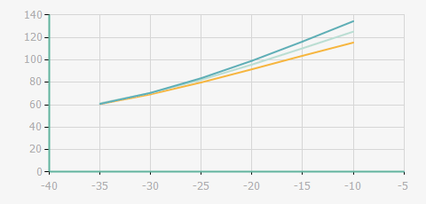 | 蒸發(fā)溫度 | 制冷量+/-5% | 能耗+/-5% | 現(xiàn)在能效+/-5% | 氣體流速+/-5% | 能效+/-7% | ||||