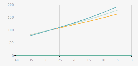 | 蒸發(fā)溫度 | 制冷量+/-5% | 能耗+/-5% | 現(xiàn)在能效+/-5% | 氣體流速+/-5% | 能效+/-7% | ||||
